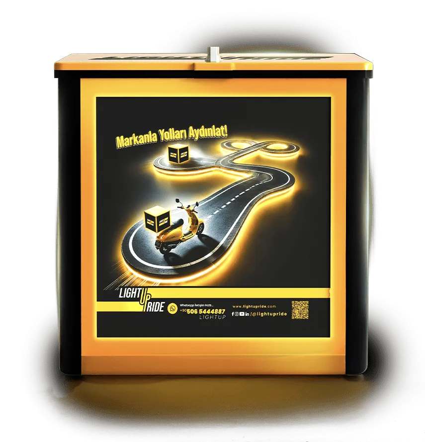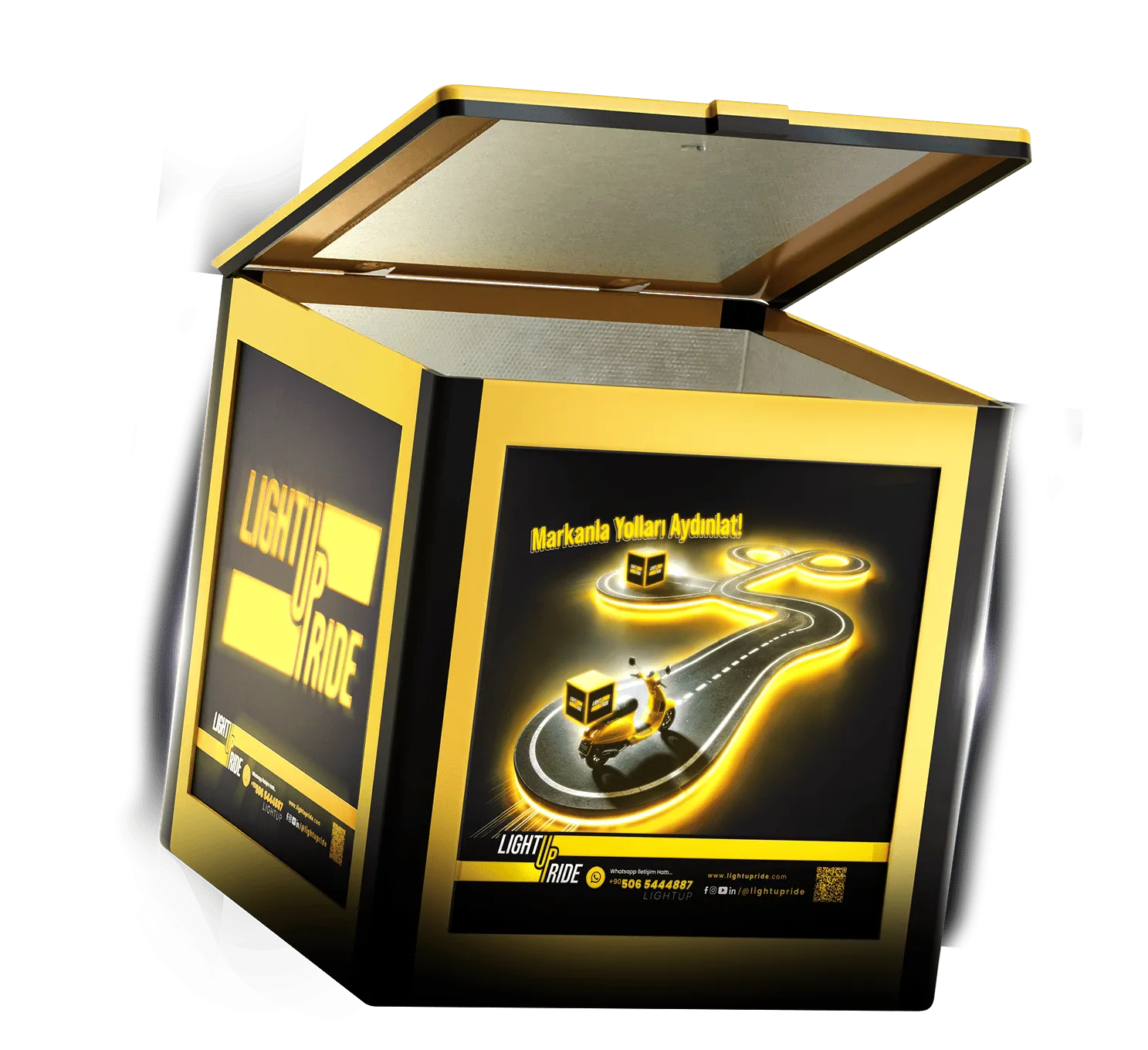 Light Up Ride, en zorlu koşullarda bile yüksek performans sunar. Gelişmiş donanım ve LED teknolojileriyle donatılmış kutularımız, güçlü aydınlatma ve uzun ömürlü kullanım sağlar. Hem güvenliğinizi hem de teslimat hızınızı artırarak işinizi bir adım öne taşıyın.